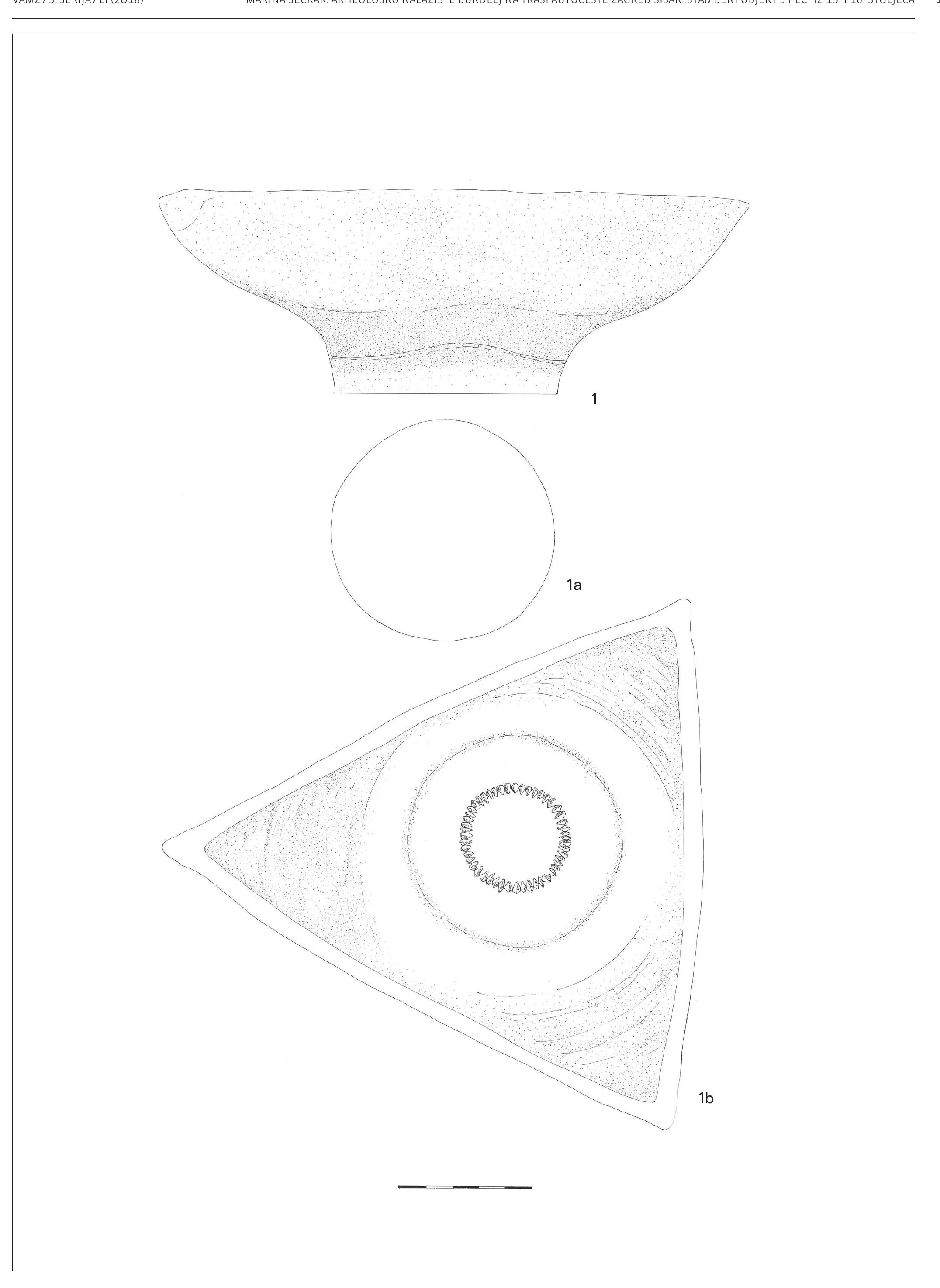 vamz / 3. serija / li (2o18) 141 Prior to the construction of a multi-storey residential building... more vamz / 3. serija / li (2o18) 141 Prior to the construction of a multi-storey residential building at 3 Branko Radičević Street in Osijek (cadastral plot number 7729/1, Osijek), 1 rescue archaeological excavations were carried out there. They were conducted by Igor Vukmanić, curator-archaeologist at Archaeological museum Osijek. The excavation was carried out between April 15 th and June 17 th 2010, as weather permitted, under the circumstance that its location is part of the preventively protected historical-urban area of the city of Osijek, which is in the Register of Cultural Property of the Republic of Croatia, inscribed on the List of Preventively Protected Cultural Items under number P-2060, and within the protected area of the Prije izgradnje višekatne stambene građevine u ulici Branka Radičevića 3 u Osijeku (k. č. br. 7729/1, k. o. Osijek), 1 na tome su mjestu obavljena zaštitna arheološka iskopavanja. Njihov je voditelj bio Igor Vukmanić, kustos-arheolog Arheološkog muzej Osijek . Istraživanje je, ovisno o vremenskim uvjetima, trajalo od 15. travnja do 17. lipnja 2010. godine, a bilo je uvjetovano okolnošću da se navedena lokacija nalazi u sklopu preventivno zaštićene povijesno-urbanističke cjeline grada Osijeka koja je upisana u Registar kulturnih dobara Republike Hrvatske, Listu preventivno zaštićenih kulturnih dobara pod brojem P-2060 te unutar područja zaštićenoga registriranoga arheološkog lokaliteta Mursa, In the context of Roman Mursa, in Branko Radičević Street in Osijek, in 2010, archaeological excavations revealed a fragment of a glass object that was probably part of a lamp. This is the only such finding in the area of Osijek, continental Croatia and the Croatian part of the former Roman province of Pannonia, and it is only the third finding of this kind revealed in the Republic of Croatia. U kontekstu rimske Murse, u osječkoj ulici Branka Radičevića, 2010. je godine zaštitnim arheološkim iskopavanjima otkriven ulomak predmeta od stakla koji je vjerojatno bio dio svjetiljke. Zasad, riječ je o jedinstvenom nalazu takve vrste na području grada Osijeka, kontinentalne Hrvatske, odnosno hrvatskog dijela nekadašnje rimske provincije Panonije, i tek o trećem nalazu ove vrste pronađenom u Republici Hrvatskoj. Ključne riječi: arheološko iskopavanje, Mursa, rimsko staklo, svjetiljka UDK: 903.03(497.5 Osijek)''652'' Prethodno priopćenje/Preliminary report The excavations were financed by the private investor (data familiar to the authors).