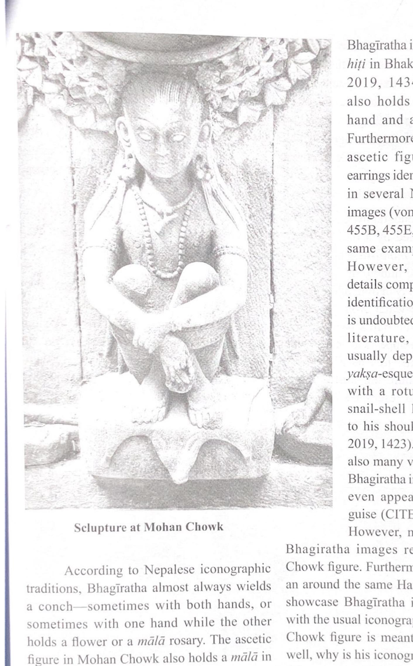 Just beneath the waterspout of an ornate stepwell in the spectacular Mohan Chowk courtyard of Nep... more Just beneath the waterspout of an ornate stepwell in the spectacular Mohan Chowk courtyard of Nepal's Hanumandhoka Palace sits an enigmatic ascetic figure. According to local customs, the position beneath a waterspout is virtually always reserved for an image of the sage Bhagīratha whose penance is said to have brought the goddess Gangā to earth in the form of a river. However, the ascetic figure beneath the Mohan Chowk waterspout is unique, for he wears the accoutrements of an initiated Nāth siddha. In this paper, I marshal art historical and literary evidence to suggest that the Mohan Chowk ascetic could be the beloved siddha par excellence, Gorakṣanāth.